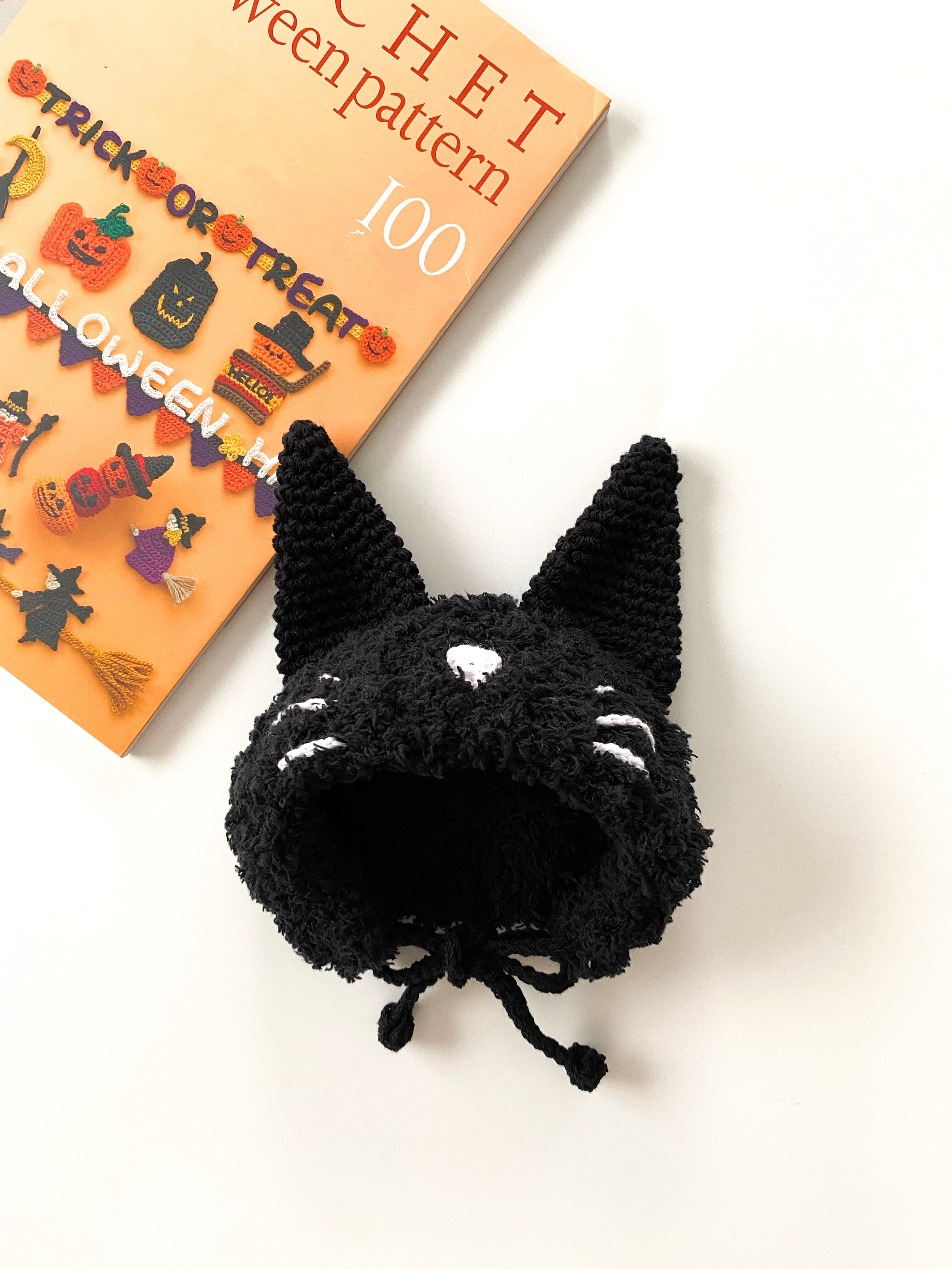 【No.081/ご注文者様専用】わんこ用 もこもこ黒猫ボンネット