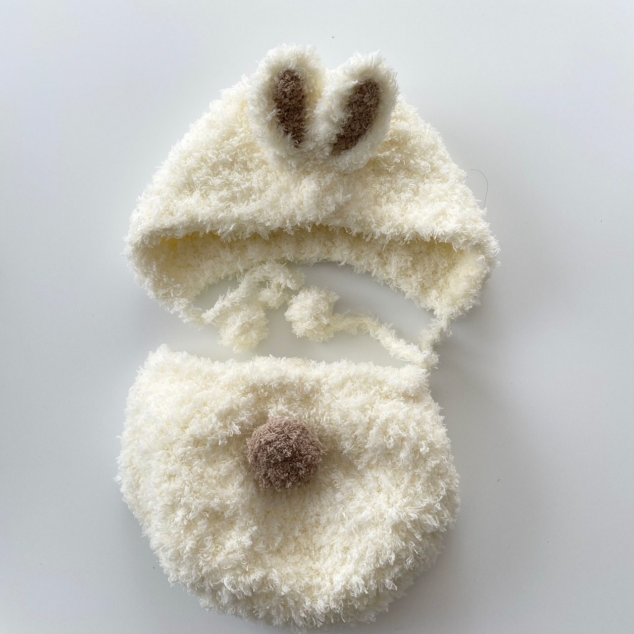 No.001もこもこうさぎ・もこもこくまさんボンネット&パンツセット他