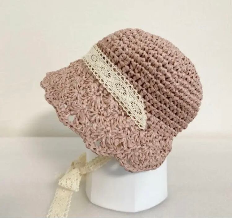 リボンを編み目に通せば顎下で結ぶ事も出来ます