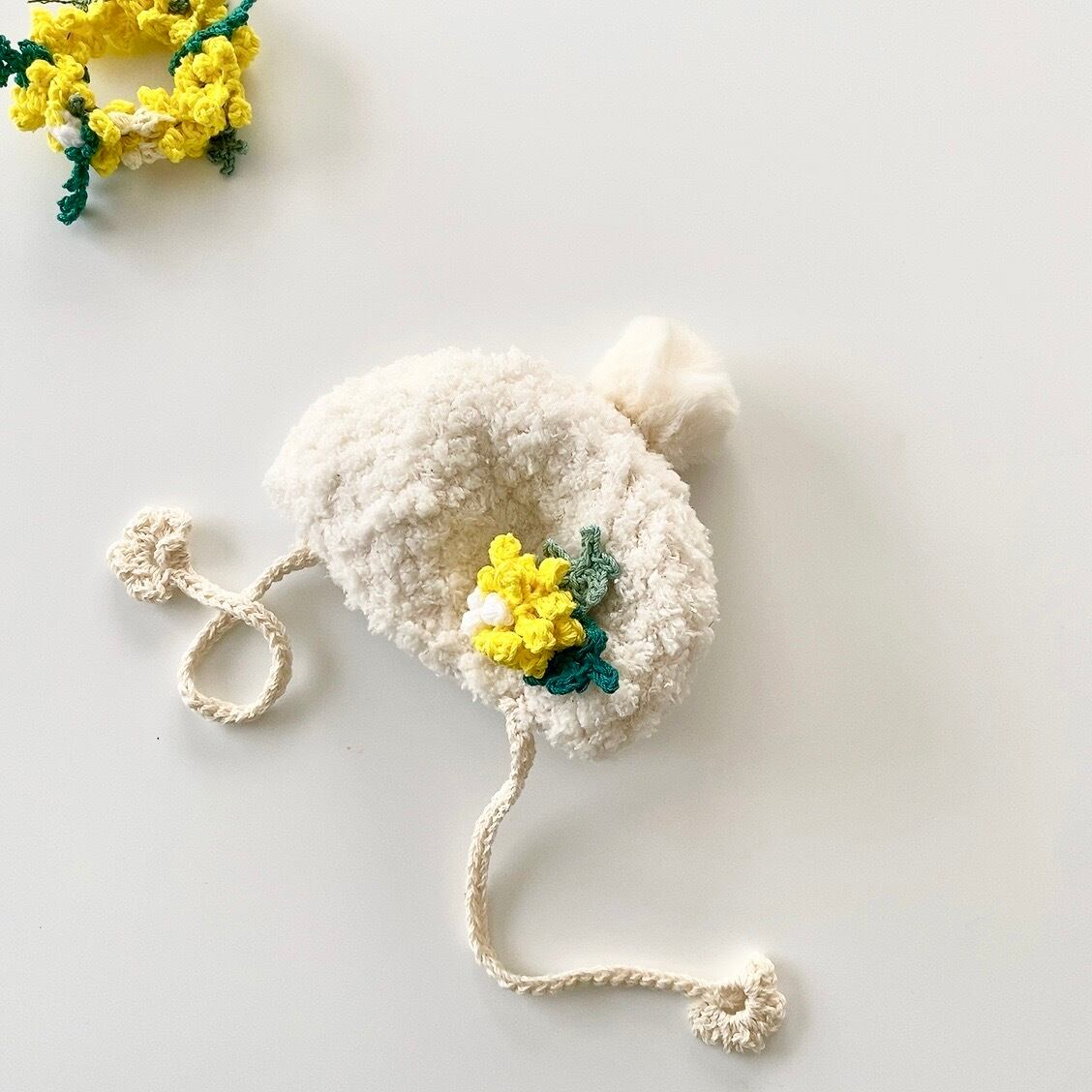 【No.306】もこもこベレー帽/ミモザ付き2個