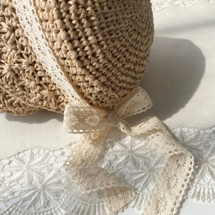 リボンを編み目に通せば顎下で結ぶ事も出来ます(写真6枚目)